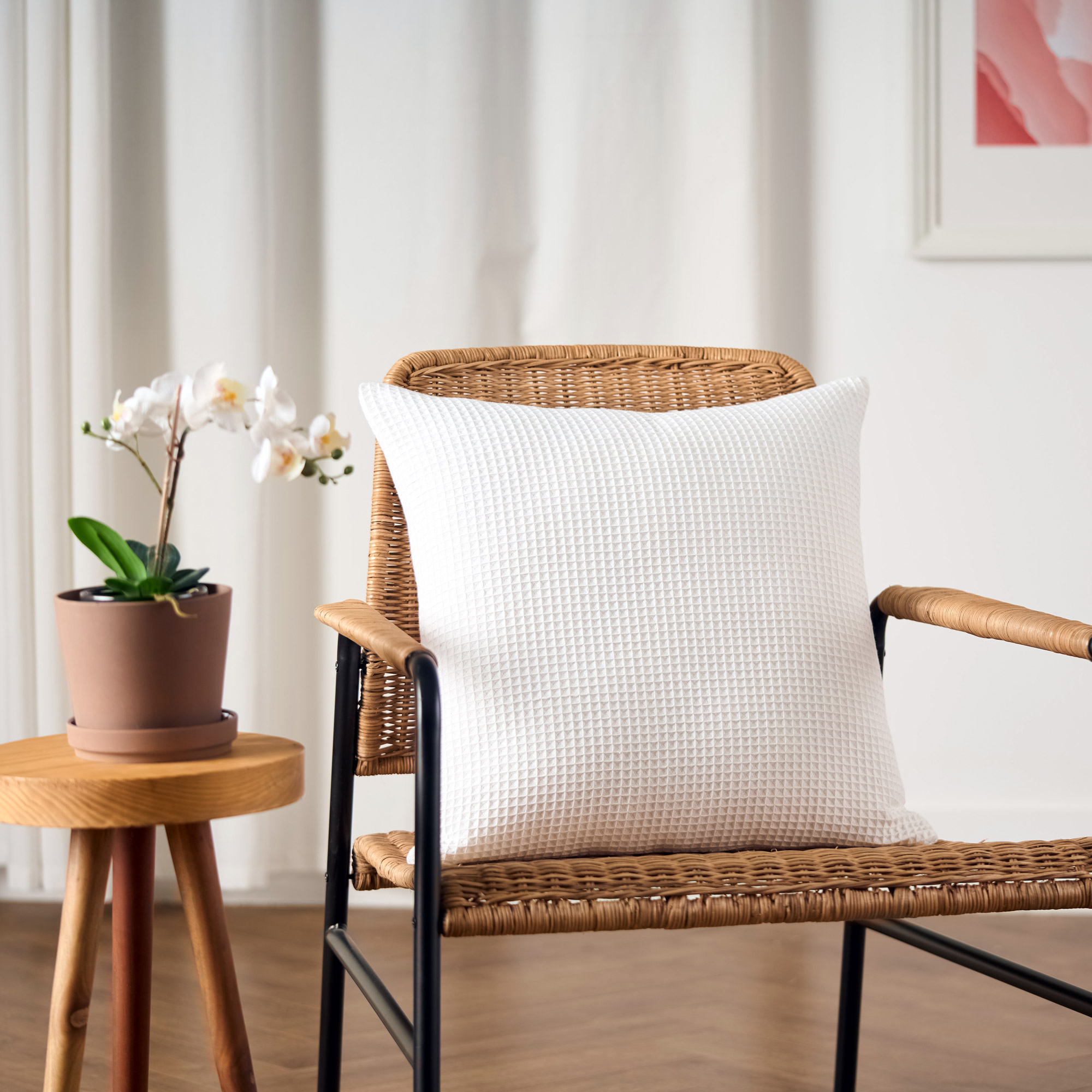 - Minimalist waffle weave pattern adds depth and texture